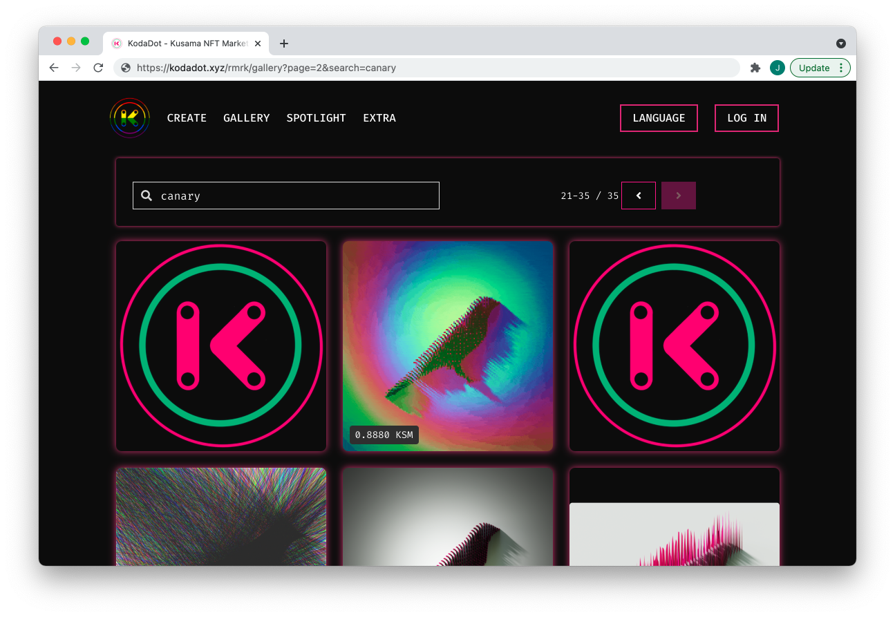 Kodadot is a carbon neutral Kusama native NFT platform that uses the RMRK protocol. Users can mint, transfer, and burn NFTs on the network. Most importantly, Kodadot has a responsive web based NFT explorer that provides an intuitive user interface.